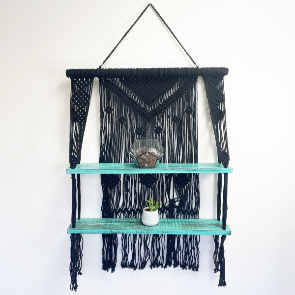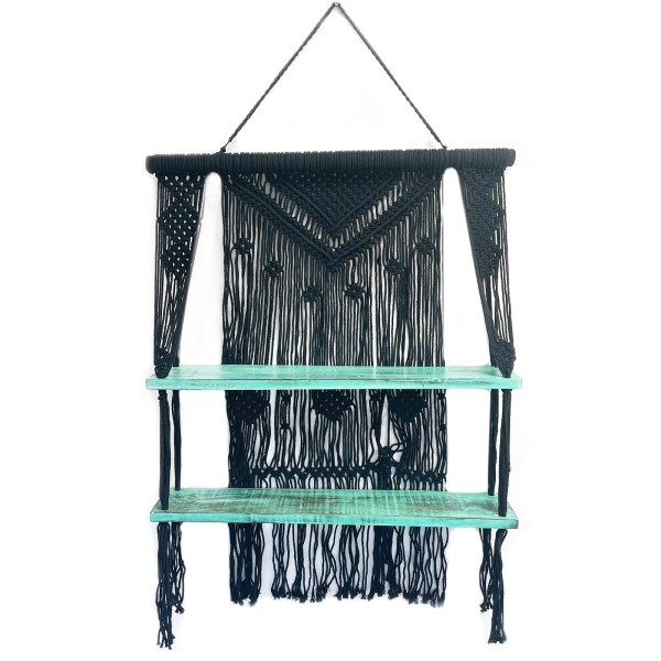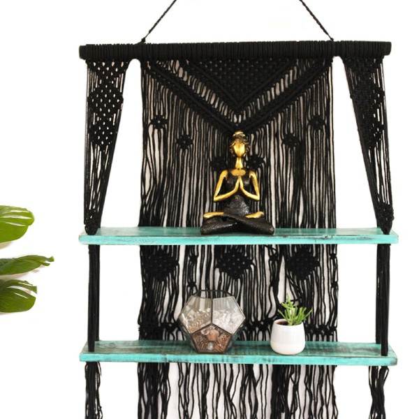 Prateleira pendurada em macramê
