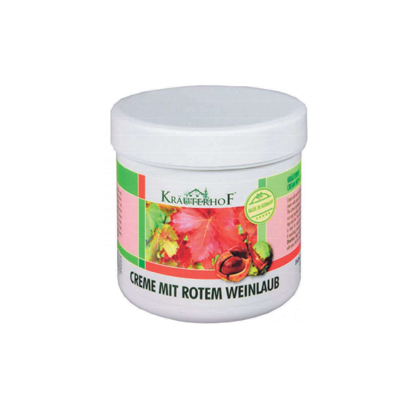 Castanha da Índia, o Creme Mit Rotem Weinlaub devolve a vitalidade às pernas e pés pesados ou cansados. Tem um agradável efeito calmante, nutritivo e regenerador que refresca pernas e pés, especialmente indicado nos dias de maior calor, quando as pernas sofrem uma maior carga de esforço.